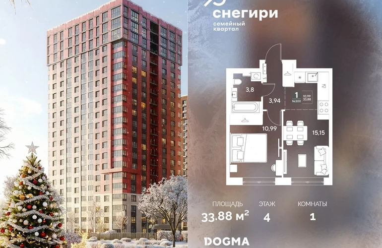 В продаже 1-комнатная квартира от застройщика DOGMA! ЖК «Снегири», г. Омск, Литер 3 Срок сдачи: (3 кв. 2029, общей площадью 33.88 кв.м., на 4 этаже.) Район для счастливой жизни«Снегири» — это семейный квартал, который дарит радость простых вещей: тепло дома, безопасность и живую природу рядом.