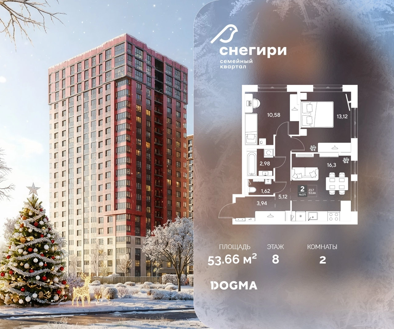 В продаже 2-комнатная квартира от застройщика DOGMA! ЖК «Снегири», г. Омск, Литер 3 Срок сдачи: (3 кв. 2029, общей площадью 53.66 кв.м., на 8 этаже.) Район для счастливой жизни«Снегири» — это семейный квартал, который дарит радость простых вещей: тепло дома, безопасность и живую природу рядом.