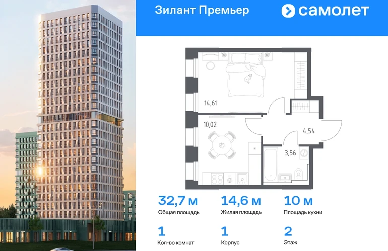 Строим кварталы для жизни с заботой о будущем. Предлагается 1-комнатная квартира комфорт-класса 32,73 кв.м в корпусе 1 на 2 этаже, в ЖК «Зилант Премьер» Квартира с предчистовой отделкой. Доступность дополнительных опций уточняйте у застройщика. Приобрести квартиру возможно по специальным акциям от застройщика, с текущими условиями акций можно ознакомиться в блоке «Акций». Цена динамическая и может отличаться, уточняйте актуальность у застройщика. Жилой комплекс «Зилант Премьер» расположен в молодом районе города. До кремля — 20 минут на авто. В получасе пешком — метро «Горки». Рядом Горкинско-Ометьевский лес, 3 школы, 2 детских сада и поликлиника, скоро откроется свой детский сад. Дома высотой от 1 до 25 этажей с фасадами, которые оживляют открытые французские балконы. В уютном дворе — детские площадки и воркаут-зона.#yan19-2r1770121#О застройщике