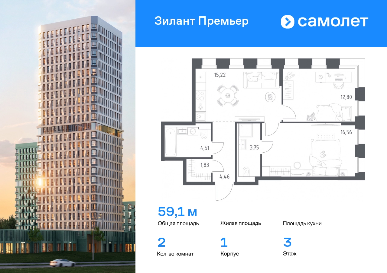 Строим кварталы для жизни с заботой о будущем. Предлагается 2-комнатная квартира комфорт-класса 59,13 кв.м в корпусе 1 на 3 этаже, в ЖК «Зилант Премьер» Квартира с предчистовой отделкой. Доступность дополнительных опций уточняйте у застройщика. Приобрести квартиру возможно по специальным акциям от застройщика, с текущими условиями акций можно ознакомиться в блоке «Акций». Цена динамическая и может отличаться, уточняйте актуальность у застройщика. Жилой комплекс «Зилант Премьер» расположен в молодом районе города. До кремля — 20 минут на авто. В получасе пешком — метро «Горки». Рядом Горкинско-Ометьевский лес, 3 школы, 2 детских сада и поликлиника, скоро откроется свой детский сад. Дома высотой от 1 до 25 этажей с фасадами, которые оживляют открытые французские балконы. В уютном дворе — детские площадки и воркаут-зона.#yan19-2r1792022#О застройщике
