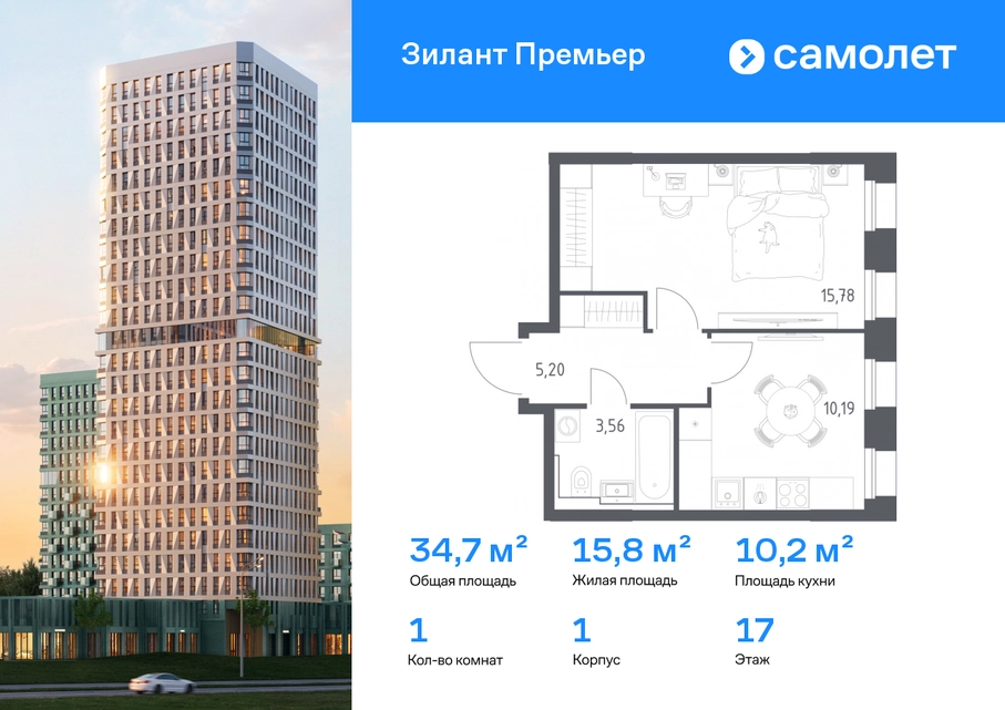 Строим кварталы для жизни с заботой о будущем. Предлагается 1-комнатная квартира комфорт-класса 34,73 кв.м в корпусе 1 на 17 этаже, в ЖК «Зилант Премьер» Квартира с предчистовой отделкой. Доступность дополнительных опций уточняйте у застройщика. Приобрести квартиру возможно по специальным акциям от застройщика, с текущими условиями акций можно ознакомиться в блоке «Акций». Цена динамическая и может отличаться, уточняйте актуальность у застройщика. Жилой комплекс «Зилант Премьер» расположен в молодом районе города. До кремля — 20 минут на авто. В получасе пешком — метро «Горки». Рядом Горкинско-Ометьевский лес, 3 школы, 2 детских сада и поликлиника, скоро откроется свой детский сад. Дома высотой от 1 до 25 этажей с фасадами, которые оживляют открытые французские балконы. В уютном дворе — детские площадки и воркаут-зона.#yan19-2r1824510#О застройщике