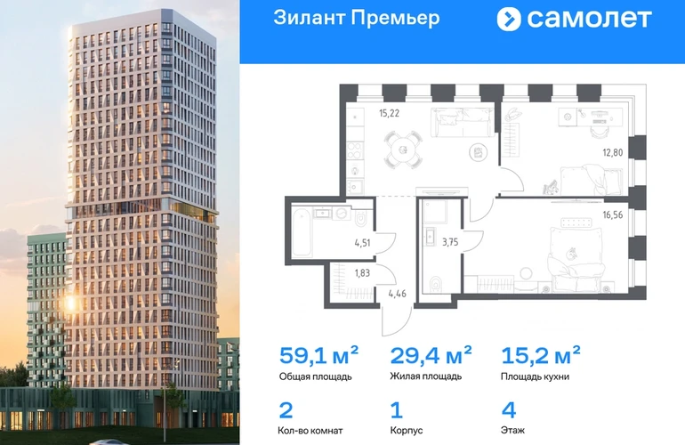 Строим кварталы для жизни с заботой о будущем. Предлагается 2-комнатная квартира комфорт-класса 59,13 кв.м в корпусе 1 на 4 этаже, в ЖК «Зилант Премьер» Квартира с предчистовой отделкой. Доступность дополнительных опций уточняйте у застройщика. Приобрести квартиру возможно по специальным акциям от застройщика, с текущими условиями акций можно ознакомиться в блоке «Акций». Цена динамическая и может отличаться, уточняйте актуальность у застройщика. Жилой комплекс «Зилант Премьер» расположен в молодом районе города. До кремля — 20 минут на авто. В получасе пешком — метро «Горки». Рядом Горкинско-Ометьевский лес, 3 школы, 2 детских сада и поликлиника, скоро откроется свой детский сад. Дома высотой от 1 до 25 этажей с фасадами, которые оживляют открытые французские балконы. В уютном дворе — детские площадки и воркаут-зона.#yan19-2r1827957#О застройщике