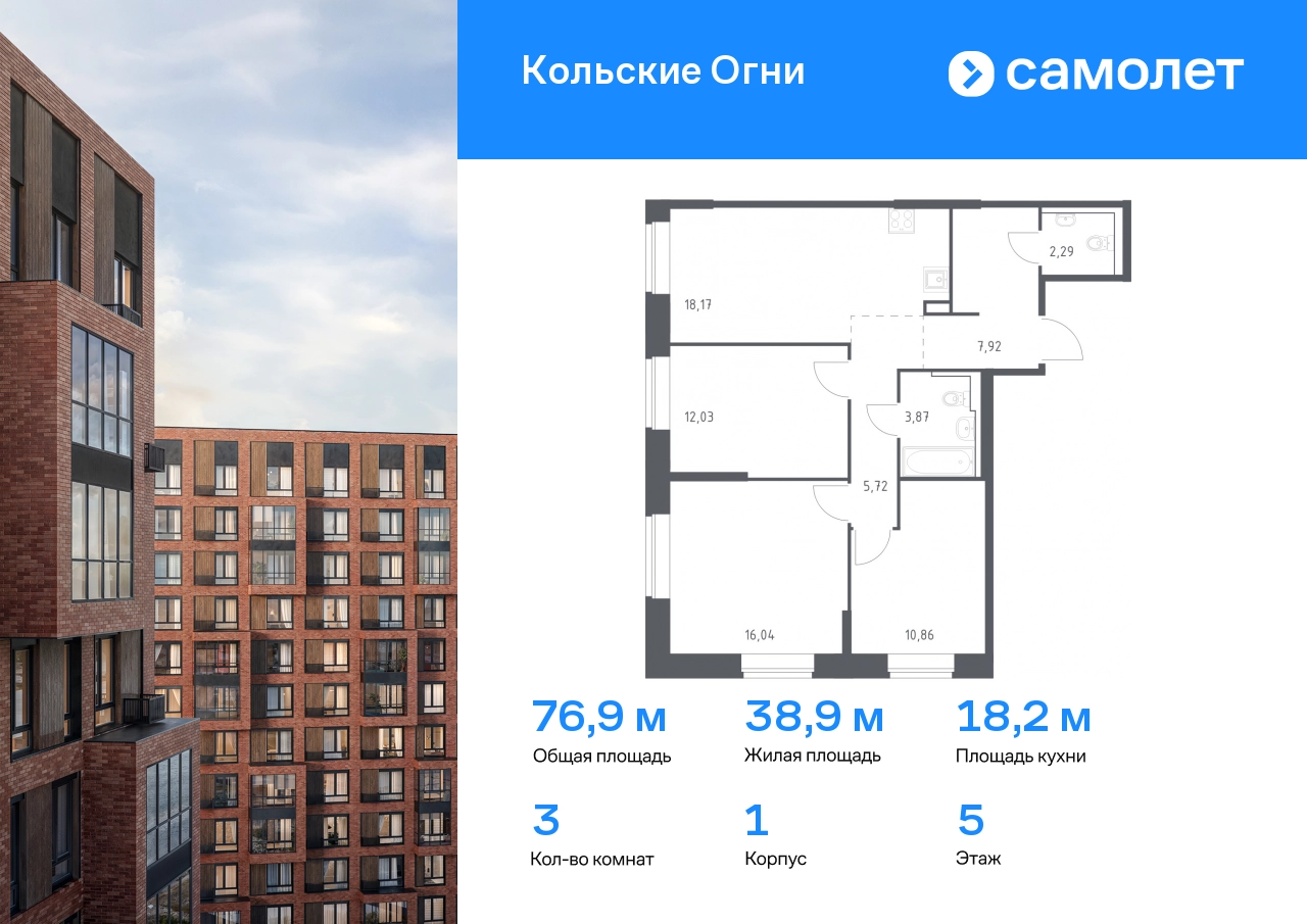 Строим кварталы для жизни с заботой о будущем. Предлагается 3-комнатная квартира комфорт-класса 76,9 кв.м в корпусе 1 на 5 этаже, в ЖК «Кольские Огни» Квартира без отделки. Доступность опции «отделка» и возможность комплектации мебелью и декором уточняйте у застройщика. Приобрести квартиру возможно по специальным акциям от застройщика, с текущими условиями акций можно ознакомиться в блоке «Акций». Цена динамическая и может отличаться, уточняйте актуальность у застройщика. Жилой комплекс «Кольские Огни» будет построен в Мурманской области, в городе Кола. Путь до центра Мурманска будет быстрым — всего 25 минут на машине. Рядом — Поморская набережная, парк, тундровый сад и лес всего в 10 минутах пешком. На первых этажах домов откроются кофейни и магазины, фитнес-зал и салон красоты, аптека, пункты выдачи заказов. Рядом с жилым комплексом работают детский сад, спортивная школа с бассейном и ФОК. Во дворе — озеленение, спортивные площадки, ремонт велосипедов, догхабы. Еще на территории квартала построим паркинг с зарядкой для электромобилей. Корпуса высотой 9–12 этажей и 14–17-этажные башни украшают деревянные панели. На входе в подъезды не будет ступеней и высоких порогов. После прогулки велосипеды и коляски можно оставить в местах хранения. Продуманные планировки от небольших студий до просторных 4-комнатных квартир. Отделка на выбор: готовая, White Box или вариант без нее. Выбирайте варианты без отделки, если хотите реализовать собственные решения.#yan19-2r1706687#О застройщике