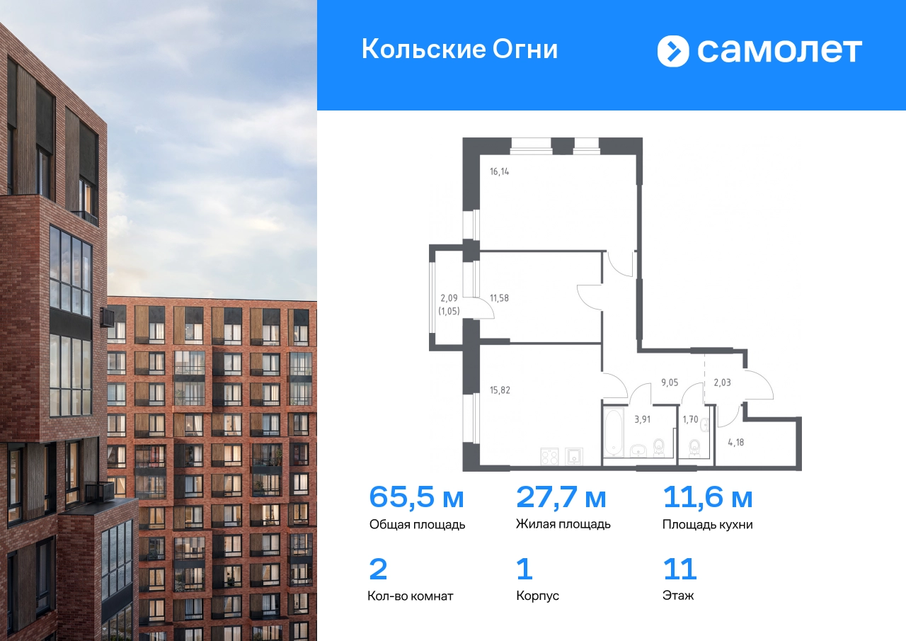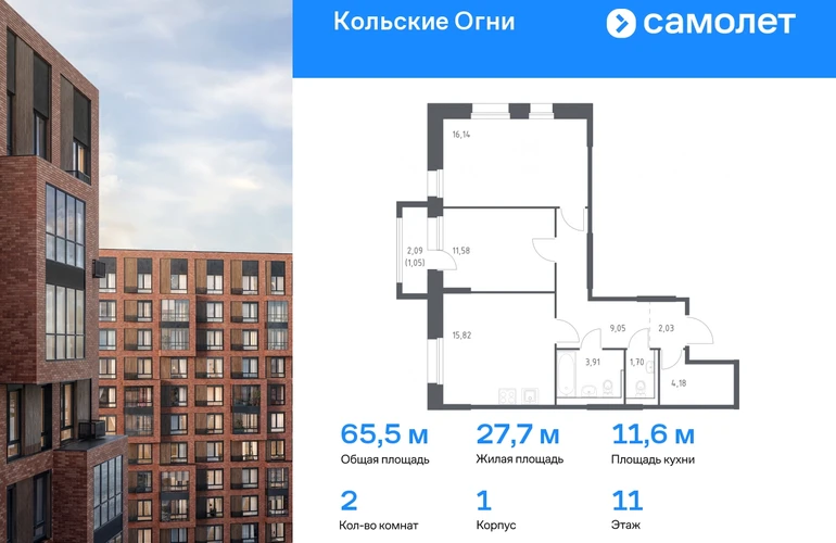 Строим кварталы для жизни с заботой о будущем. Предлагается 2-комнатная квартира комфорт-класса 60,71 кв.м в корпусе 1 на 11 этаже, в ЖК «Кольские Огни» Квартира без отделки. Доступность опции «отделка» и возможность комплектации мебелью и декором уточняйте у застройщика. Приобрести квартиру возможно по специальным акциям от застройщика, с текущими условиями акций можно ознакомиться в блоке «Акций». Цена динамическая и может отличаться, уточняйте актуальность у застройщика. Жилой комплекс «Кольские Огни» будет построен в Мурманской области, в городе Кола. Путь до центра Мурманска будет быстрым — всего 25 минут на машине. Рядом — Поморская набережная, парк, тундровый сад и лес всего в 10 минутах пешком. На первых этажах домов откроются кофейни и магазины, фитнес-зал и салон красоты, аптека, пункты выдачи заказов. Рядом с жилым комплексом работают детский сад, спортивная школа с бассейном и ФОК. Во дворе — озеленение, спортивные площадки, ремонт велосипедов, догхабы. Еще на территории квартала построим паркинг с зарядкой для электромобилей. Корпуса высотой 9–12 этажей и 14–17-этажные башни украшают деревянные панели. На входе в подъезды не будет ступеней и высоких порогов. После прогулки велосипеды и коляски можно оставить в местах хранения. Продуманные планировки от небольших студий до просторных 4-комнатных квартир. Отделка на выбор: готовая, White Box или вариант без нее. Выбирайте варианты без отделки, если хотите реализовать собственные решения.#yan19-2r1706706#О застройщике