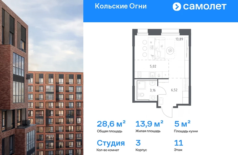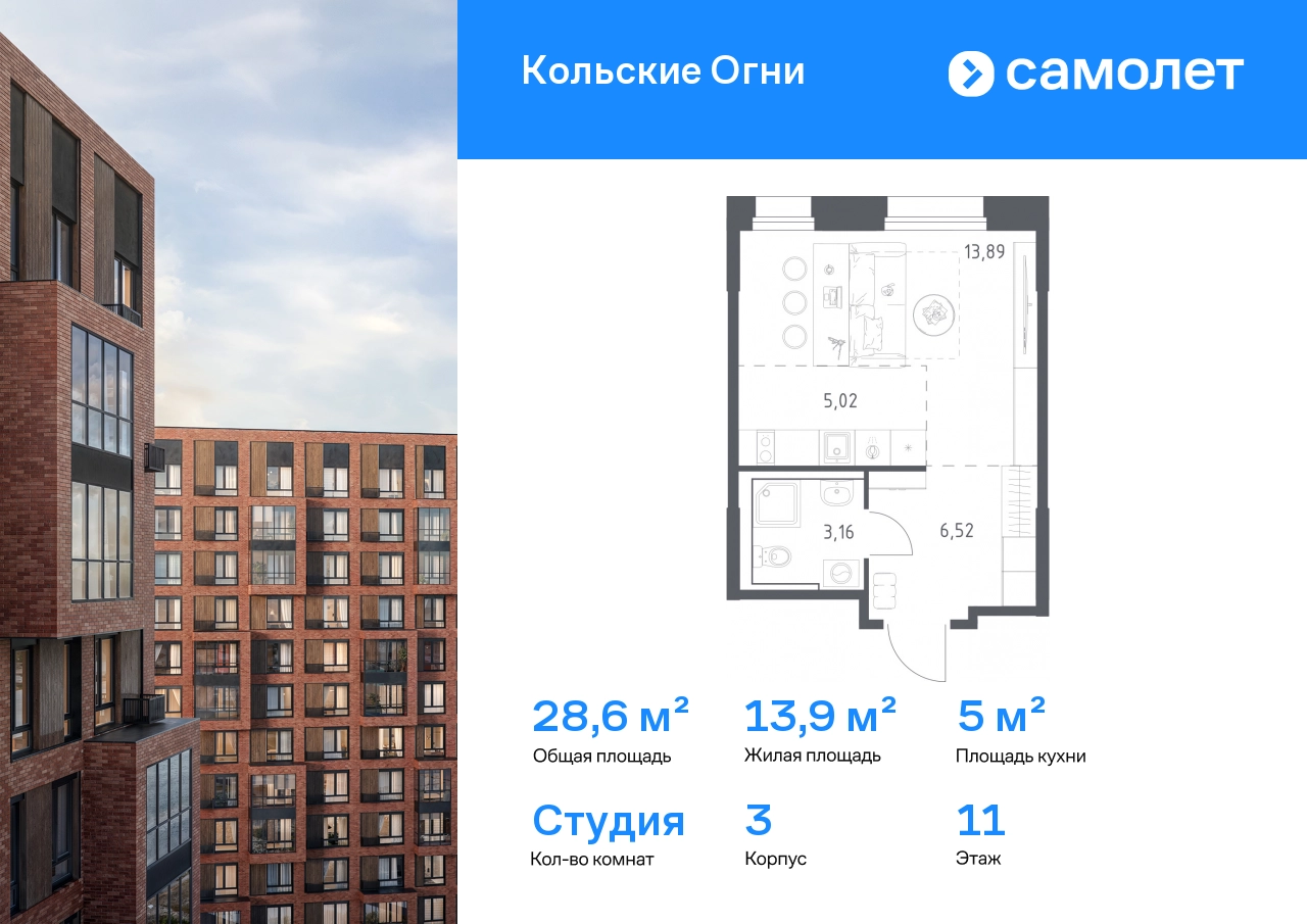 Строим кварталы для жизни с заботой о будущем. Предлагается квартира студия комфорт-класса 28,59 кв.м в корпусе 3 на 11 этаже, в ЖК «Кольские Огни» Квартира без отделки. Доступность опции «отделка» и возможность комплектации мебелью и декором уточняйте у застройщика. Приобрести квартиру возможно по специальным акциям от застройщика, с текущими условиями акций можно ознакомиться в блоке «Акций». Цена динамическая и может отличаться, уточняйте актуальность у застройщика. Жилой комплекс «Кольские Огни» будет построен в Мурманской области, в городе Кола. Путь до центра Мурманска будет быстрым — всего 25 минут на машине. Рядом — Поморская набережная, парк, тундровый сад и лес всего в 10 минутах пешком. На первых этажах домов откроются кофейни и магазины, фитнес-зал и салон красоты, аптека, пункты выдачи заказов. Рядом с жилым комплексом работают детский сад, спортивная школа с бассейном и ФОК. Во дворе — озеленение, спортивные площадки, ремонт велосипедов, догхабы. Еще на территории квартала построим паркинг с зарядкой для электромобилей. Корпуса высотой 9–12 этажей и 14–17-этажные башни украшают деревянные панели. На входе в подъезды не будет ступеней и высоких порогов. После прогулки велосипеды и коляски можно оставить в местах хранения. Продуманные планировки от небольших студий до просторных 4-комнатных квартир. Отделка на выбор: готовая, White Box или вариант без нее. Выбирайте варианты без отделки, если хотите реализовать собственные решения.#yan19-2r1819625#О застройщике