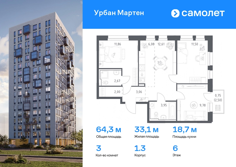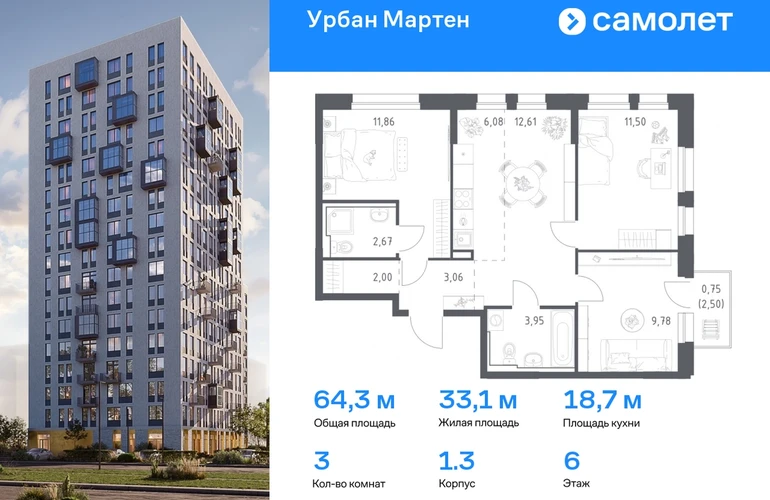 Строим кварталы для жизни с заботой о будущем. Предлагается 3-комнатная квартира комфорт-класса 64,53 кв.м в корпусе 1.3 на 6 этаже, в ЖК «Урбан Мартен» Квартира с предчистовой отделкой. Доступность дополнительных опций уточняйте у застройщика. Приобрести квартиру возможно по специальным акциям от застройщика, с текущими условиями акций можно ознакомиться в блоке «Акций». Цена динамическая и может отличаться, уточняйте актуальность у застройщика. В жилом комплексе «Урбан Мартен» у вас будет собственная Уфа: домашняя, неторопливая, теплая. Здесь дети будут играть во дворе без машин в догонялки, собака сможет бегать за палкой по пляжу, а с соседями получится встречаться не только у лифта, но и на утренних занятиях йогой на зеленой лужайке рядом с домом. Жилой комплекс «Урбан Мартен» находится в Демском районе — самом тихом и зеленом в Уфе. Здесь можно открывать окна нараспашку, чтобы квартира наполнялась свежим воздухом, и наблюдать с балкона, как покачиваются макушки деревьев. #yan19-2r1758395#