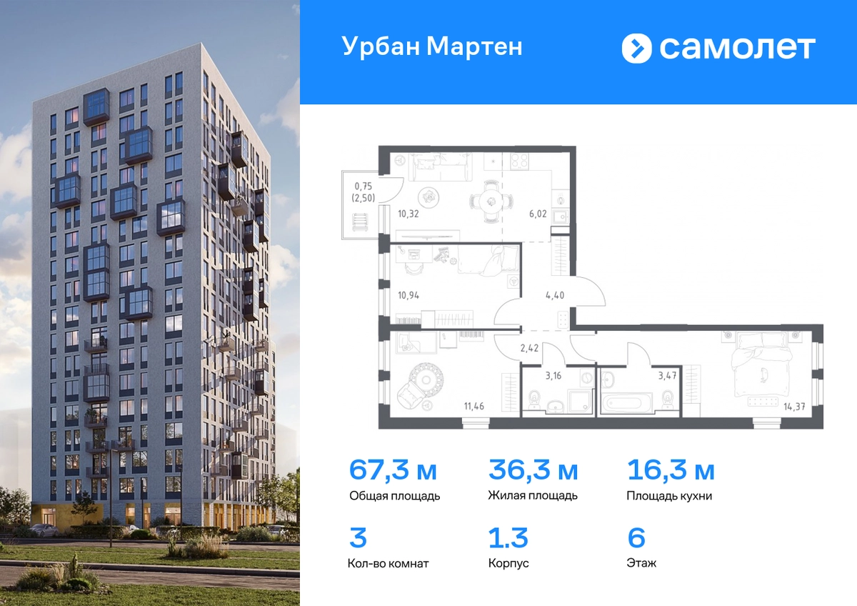 Строим кварталы для жизни с заботой о будущем. Предлагается 3-комнатная квартира комфорт-класса 67,47 кв.м в корпусе 1.3 на 6 этаже, в ЖК «Урбан Мартен» Квартира с предчистовой отделкой. Доступность дополнительных опций уточняйте у застройщика. Приобрести квартиру возможно по специальным акциям от застройщика, с текущими условиями акций можно ознакомиться в блоке «Акций». Цена динамическая и может отличаться, уточняйте актуальность у застройщика. В жилом комплексе «Урбан Мартен» у вас будет собственная Уфа: домашняя, неторопливая, теплая. Здесь дети будут играть во дворе без машин в догонялки, собака сможет бегать за палкой по пляжу, а с соседями получится встречаться не только у лифта, но и на утренних занятиях йогой на зеленой лужайке рядом с домом. Жилой комплекс «Урбан Мартен» находится в Демском районе — самом тихом и зеленом в Уфе. Здесь можно открывать окна нараспашку, чтобы квартира наполнялась свежим воздухом, и наблюдать с балкона, как покачиваются макушки деревьев. #yan19-2r1758440#О застройщике
