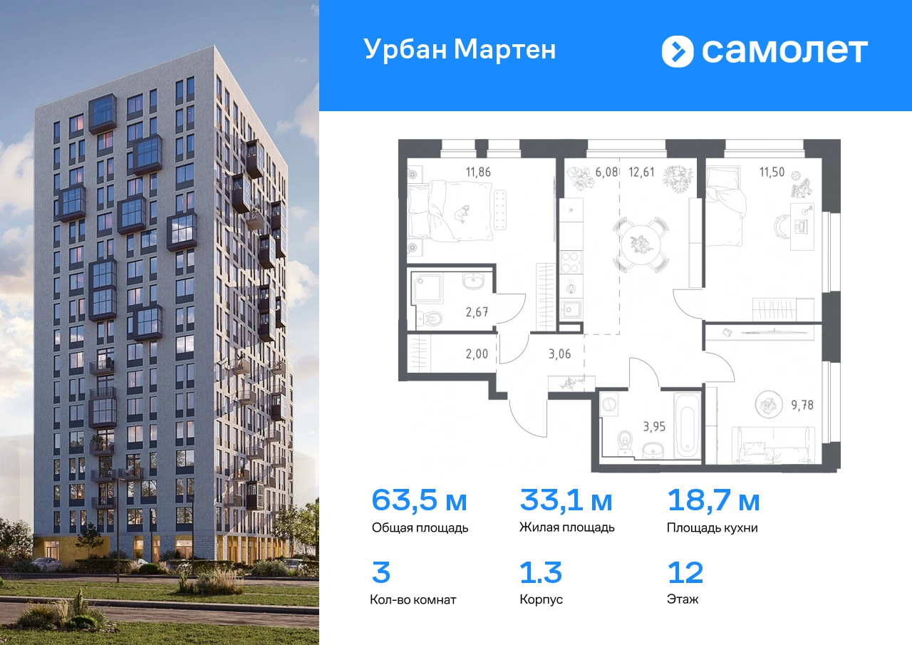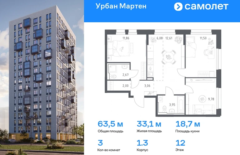 Строим кварталы для жизни с заботой о будущем. Предлагается 3-комнатная квартира комфорт-класса 63,85 кв.м в корпусе 1.3 на 12 этаже, в ЖК «Урбан Мартен» Квартира с предчистовой отделкой. Доступность дополнительных опций уточняйте у застройщика. Приобрести квартиру возможно по специальным акциям от застройщика, с текущими условиями акций можно ознакомиться в блоке «Акций». Цена динамическая и может отличаться, уточняйте актуальность у застройщика. В жилом комплексе «Урбан Мартен» у вас будет собственная Уфа: домашняя, неторопливая, теплая. Здесь дети будут играть во дворе без машин в догонялки, собака сможет бегать за палкой по пляжу, а с соседями получится встречаться не только у лифта, но и на утренних занятиях йогой на зеленой лужайке рядом с домом. Жилой комплекс «Урбан Мартен» находится в Демском районе — самом тихом и зеленом в Уфе. Здесь можно открывать окна нараспашку, чтобы квартира наполнялась свежим воздухом, и наблюдать с балкона, как покачиваются макушки деревьев. #yan19-2r1768341#О застройщике