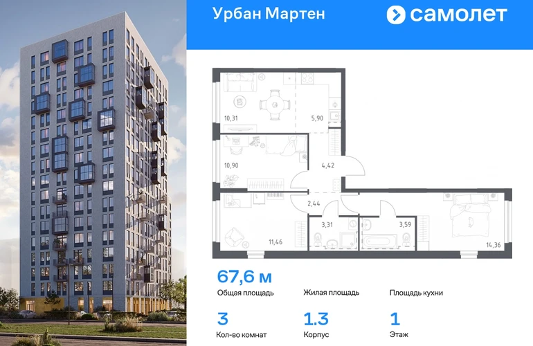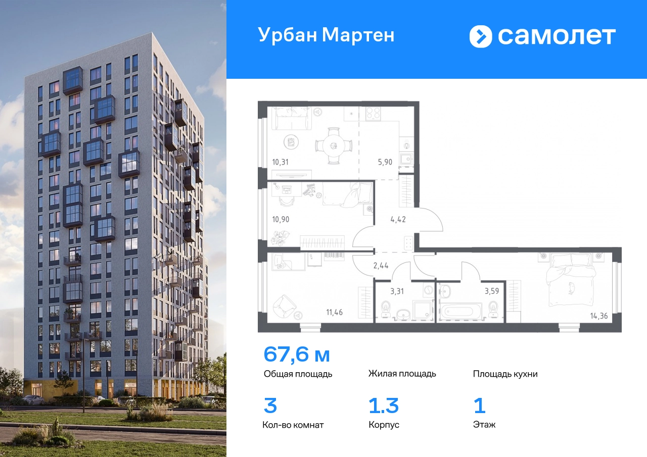 Строим кварталы для жизни с заботой о будущем. Предлагается 3-комнатная квартира комфорт-класса 66,69 кв.м в корпусе 1.3 на 1 этаже, в ЖК «Урбан Мартен» Квартира с предчистовой отделкой. Доступность дополнительных опций уточняйте у застройщика. Приобрести квартиру возможно по специальным акциям от застройщика, с текущими условиями акций можно ознакомиться в блоке «Акций». Цена динамическая и может отличаться, уточняйте актуальность у застройщика. В жилом комплексе «Урбан Мартен» у вас будет собственная Уфа: домашняя, неторопливая, теплая. Здесь дети будут играть во дворе без машин в догонялки, собака сможет бегать за палкой по пляжу, а с соседями получится встречаться не только у лифта, но и на утренних занятиях йогой на зеленой лужайке рядом с домом. Жилой комплекс «Урбан Мартен» находится в Демском районе — самом тихом и зеленом в Уфе. Здесь можно открывать окна нараспашку, чтобы квартира наполнялась свежим воздухом, и наблюдать с балкона, как покачиваются макушки деревьев. #yan19-2r1810401#О застройщике