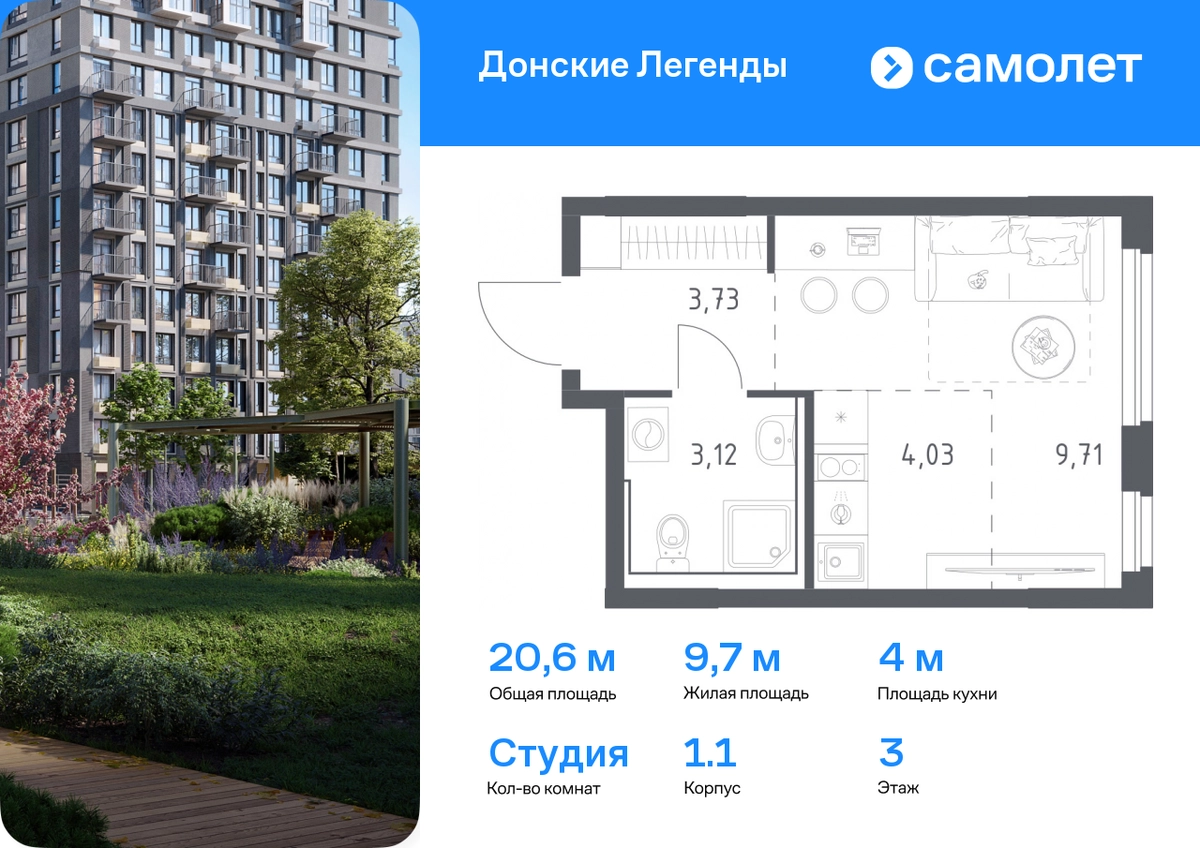 Строим кварталы для жизни с заботой о будущем. Предлагается квартира студия комфорт-класса 20,59 кв.м в корпусе 1.1 на 3 этаже, в ЖК «Донские Легенды» Квартира с предчистовой отделкой. Доступность дополнительных опций уточняйте у застройщика. Приобрести квартиру возможно по специальным акциям от застройщика, с текущими условиями акций можно ознакомиться в блоке «Акций». Цена динамическая и может отличаться, уточняйте актуальность у застройщика. Чувствовать гордость, когда любимая команда забивает гол, и с удовольствием спешить на тренировку по мини-футболу или теннису — так выглядит атмосфера в «Квартале Чехова» в Ленинском районе. Здесь каждый день станет ценным экспонатом в вашей коллекции впечатлений. Проект расположен рядом с Восточным шоссе и улицей Пойменной, всего в 10 минутах на машине от центра города. За 3 минуты вы доберетесь до Ворошиловского моста, а за 4 — до Темерницкого. Если не хотите ехать на машине, рядом остановки автобусов. Поблизости находится спортивный комплекс «Гребной канал Дон», а стадион «Ростов Арена» ждет любителей футбола. Прогуляться по благоустроенной набережной, повеселиться в аквапарке и подкрепиться мороженым можно в Левобережном парке — до него 5 минут на такси. Утро начнется с прогулки с малышом до одного из 3 детских садов. Рядом есть школа для ребят постарше, детская школа искусств, центр культурного развития и ФОК. В квартале откроются поликлиника со станцией скорой помощи и 2 торговых центра. Архитектура квартала сочетает современность и изящество. Элегантные французские балконы и панорамные окна позволят наслаждаться великолепными пейзажами. Во дворе дети играют на площадках, а взрослые занимаются спортом. У жителей будет собственный ипподром для соревнований по конкуру. А еще подземный и многоуровневые паркинги на 7,5 тысячи машино-мест. Входы в подъезды расположены на уровне земли, что удобно для родителей с колясками и путешественников. Для будущих жителей — квартиры без отделки. Можно реализовать любые дизайнерские идеи в своем новом доме.#yan19-2r1791991#О застройщике