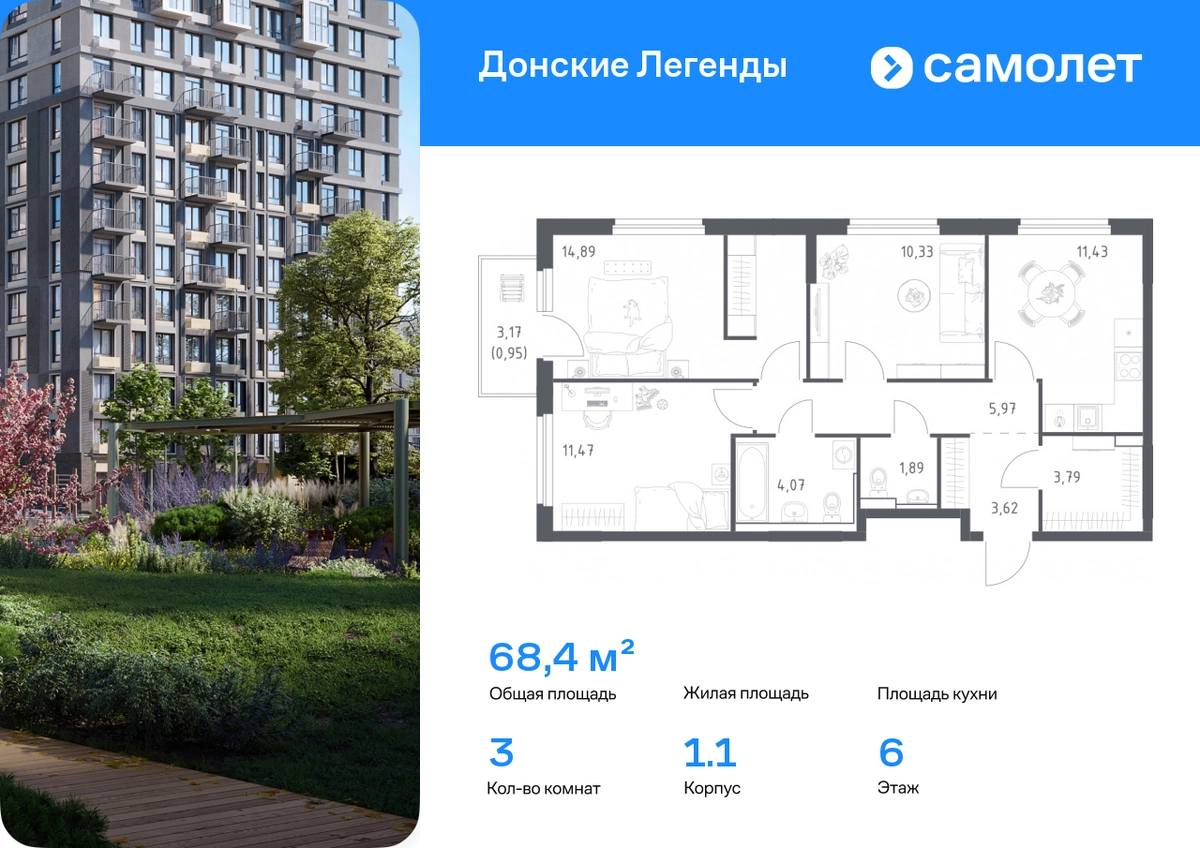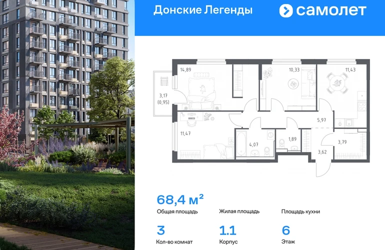 Строим кварталы для жизни с заботой о будущем. Предлагается 3-комнатная квартира комфорт-класса 68,41 кв.м в корпусе 1.1 на 6 этаже, в ЖК «Донские Легенды» Квартира без отделки. Доступность опции «отделка» и возможность комплектации мебелью и декором уточняйте у застройщика. Приобрести квартиру возможно по специальным акциям от застройщика, с текущими условиями акций можно ознакомиться в блоке «Акций». Цена динамическая и может отличаться, уточняйте актуальность у застройщика. Чувствовать гордость, когда любимая команда забивает гол, и с удовольствием спешить на тренировку по мини-футболу или теннису — так выглядит атмосфера в «Квартале Чехова» в Ленинском районе. Здесь каждый день станет ценным экспонатом в вашей коллекции впечатлений. Проект расположен рядом с Восточным шоссе и улицей Пойменной, всего в 10 минутах на машине от центра города. За 3 минуты вы доберетесь до Ворошиловского моста, а за 4 — до Темерницкого. Если не хотите ехать на машине, рядом остановки автобусов. Поблизости находится спортивный комплекс «Гребной канал Дон», а стадион «Ростов Арена» ждет любителей футбола. Прогуляться по благоустроенной набережной, повеселиться в аквапарке и подкрепиться мороженым можно в Левобережном парке — до него 5 минут на такси. Утро начнется с прогулки с малышом до одного из 3 детских садов. Рядом есть школа для ребят постарше, детская школа искусств, центр культурного развития и ФОК. В квартале откроются поликлиника со станцией скорой помощи и 2 торговых центра. Архитектура квартала сочетает современность и изящество. Элегантные французские балконы и панорамные окна позволят наслаждаться великолепными пейзажами. Во дворе дети играют на площадках, а взрослые занимаются спортом. У жителей будет собственный ипподром для соревнований по конкуру. А еще подземный и многоуровневые паркинги на 7,5 тысячи машино-мест. Входы в подъезды расположены на уровне земли, что удобно для родителей с колясками и путешественников. Для будущих жителей — квартиры без отделки. Можно реализовать любые дизайнерские идеи в своем новом доме.#yan19-2r1819639#О застройщике