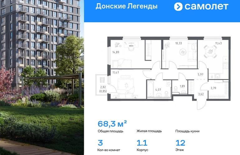 Строим кварталы для жизни с заботой о будущем. Предлагается 3-комнатная квартира комфорт-класса 68,31 кв.м в корпусе 1.1 на 12 этаже, в ЖК «Донские Легенды» Квартира без отделки. Доступность опции «отделка» и возможность комплектации мебелью и декором уточняйте у застройщика. Приобрести квартиру возможно по специальным акциям от застройщика, с текущими условиями акций можно ознакомиться в блоке «Акций». Цена динамическая и может отличаться, уточняйте актуальность у застройщика. Чувствовать гордость, когда любимая команда забивает гол, и с удовольствием спешить на тренировку по мини-футболу или теннису — так выглядит атмосфера в «Квартале Чехова» в Ленинском районе. Здесь каждый день станет ценным экспонатом в вашей коллекции впечатлений. Проект расположен рядом с Восточным шоссе и улицей Пойменной, всего в 10 минутах на машине от центра города. За 3 минуты вы доберетесь до Ворошиловского моста, а за 4 — до Темерницкого. Если не хотите ехать на машине, рядом остановки автобусов. Поблизости находится спортивный комплекс «Гребной канал Дон», а стадион «Ростов Арена» ждет любителей футбола. Прогуляться по благоустроенной набережной, повеселиться в аквапарке и подкрепиться мороженым можно в Левобережном парке — до него 5 минут на такси. Утро начнется с прогулки с малышом до одного из 3 детских садов. Рядом есть школа для ребят постарше, детская школа искусств, центр культурного развития и ФОК. В квартале откроются поликлиника со станцией скорой помощи и 2 торговых центра. Архитектура квартала сочетает современность и изящество. Элегантные французские балконы и панорамные окна позволят наслаждаться великолепными пейзажами. Во дворе дети играют на площадках, а взрослые занимаются спортом. У жителей будет собственный ипподром для соревнований по конкуру. А еще подземный и многоуровневые паркинги на 7,5 тысячи машино-мест. Входы в подъезды расположены на уровне земли, что удобно для родителей с колясками и путешественников. Для будущих жителей — квартиры без отделки. Можно реализовать любые дизайнерские идеи в своем новом доме.#yan19-2r1822443#О застройщике