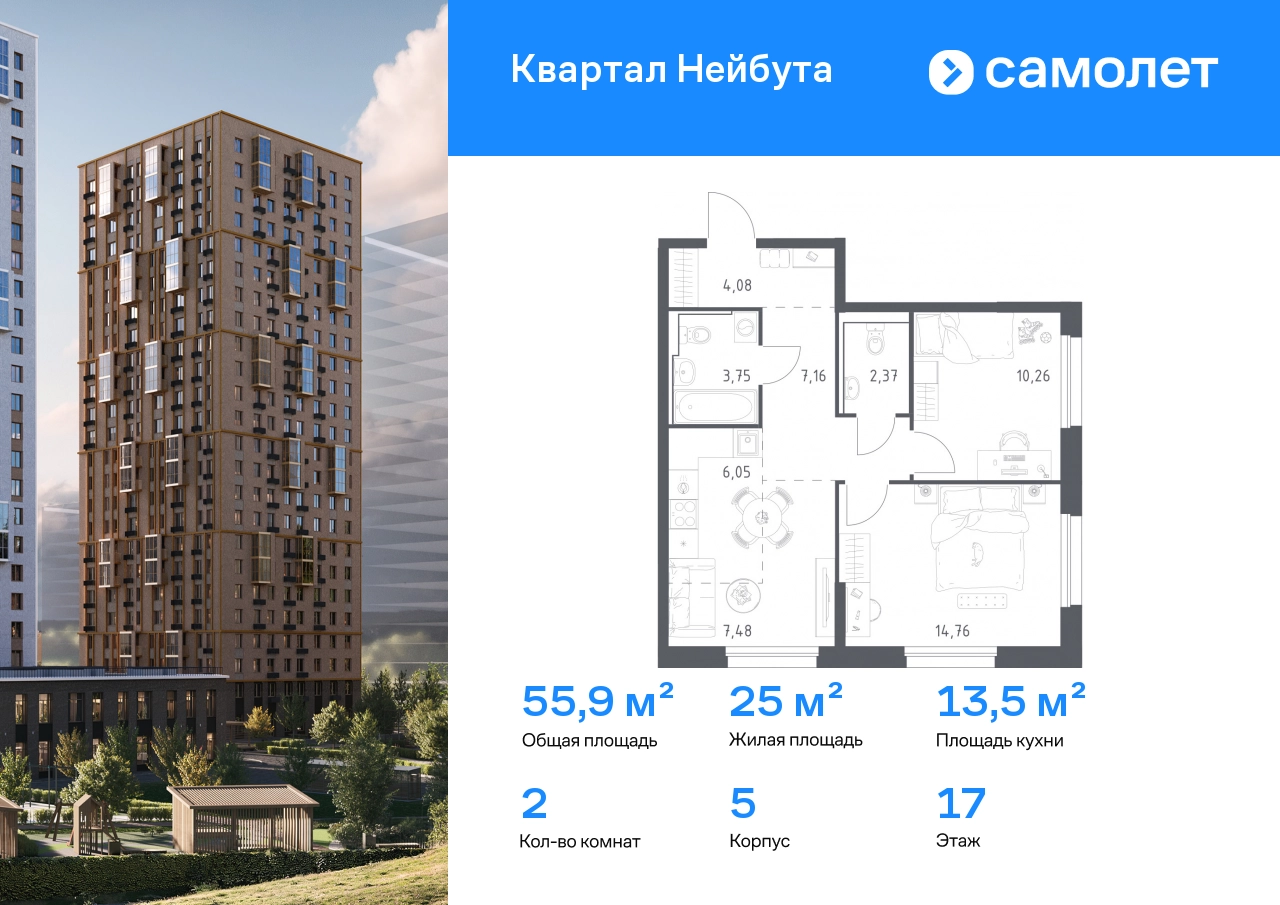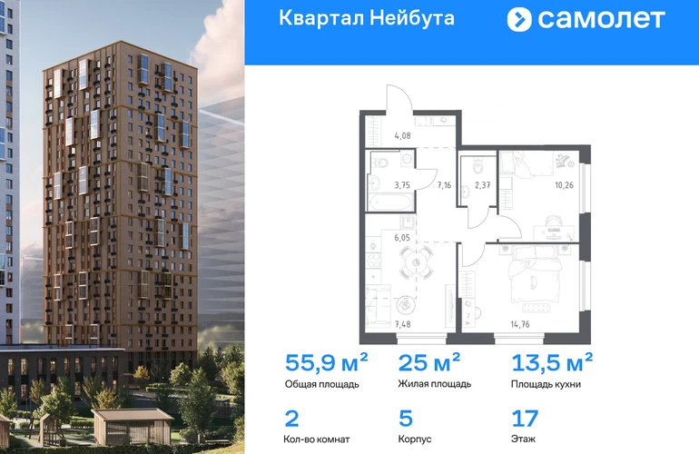 Строим кварталы для жизни с заботой о будущем. Предлагается 2-комнатная квартира комфорт-класса 55,94 кв.м в корпусе 5 на 17 этаже, в ЖК «Квартал Нейбута» Квартира с чистовой отделкой. Доступность дополнительных опций уточняйте у застройщика. Приобрести квартиру возможно по специальным акциям от застройщика, с текущими условиями акций можно ознакомиться в блоке «Акций». Цена динамическая и может отличаться, уточняйте актуальность у застройщика. «Квартал Нейбута» находится в Ленинском районе Владивостока. Дорога до центра города, морского и ж/д вокзалов займет 30 минут на машине или 45 минут на автобусе. Международный аэропорт находится в часе езды от дома. Скоро в квартале будет удобный выезд, откуда можно попасть на трассу Патрокл — Седанка — Де-Фриз — Новый. 26-этажные дома с отделкой золотистых и благородных коричневых оттенков гармонично впишутся в живописный дальневосточный пейзаж. Объем фасадам придают витражные балконы. Закрытые дворы без машин — маленький мир, вдохновленный природой Приморского края. Во дворе найдется занятие для всех жителей квартала. Взрослые смогут устраивать тренировки в спортивных зонах, дети будут веселиться на игровых площадках. А для четвероногих питомцев мы предусмотрели специальные зоны для выгула. Мы отказались от ступенек и порогов у входов в подъезд. Оставить коляску или велосипед можно на первом этаже, в специальном помещении. На подземном этаже предусмотрены кладовые.#yan19-2r1800595#О застройщике