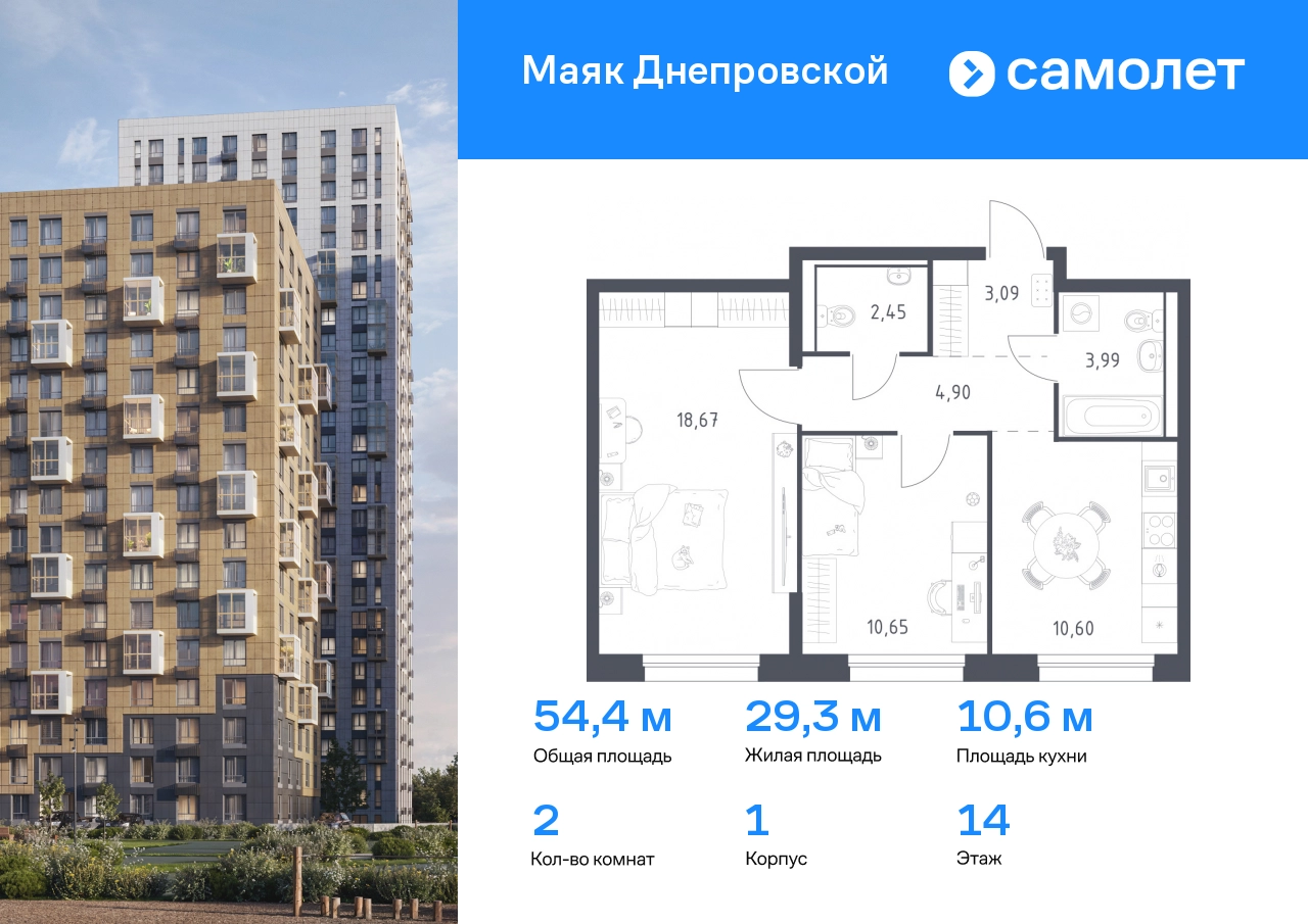 Строим кварталы для жизни с заботой о будущем. Предлагается 2-комнатная квартира комфорт-класса 54,36 кв.м в корпусе 1 на 14 этаже, в ЖК «Маяк Днепровской» Квартира с предчистовой отделкой. Доступность дополнительных опций уточняйте у застройщика. Приобрести квартиру возможно по специальным акциям от застройщика, с текущими условиями акций можно ознакомиться в блоке «Акций». Цена динамическая и может отличаться, уточняйте актуальность у застройщика. «Маяк Днепровской» — это маленький город с домами высотой от 17 до 30 этажей. Мы строим современные здания со стилобатами и террасами, которые отвечают архитектурным трендам, но при этом гармонично вписываются в окружающие пейзажи. Переменная этажность домов повторяет уникальный дальневосточный ландшафт, а оттенки фасадов перекликаются с красками природы. Здесь вы будете любоваться живописными закатами и встречать рассветы с панорамного балкона. #yan19-2r1718786#О застройщике