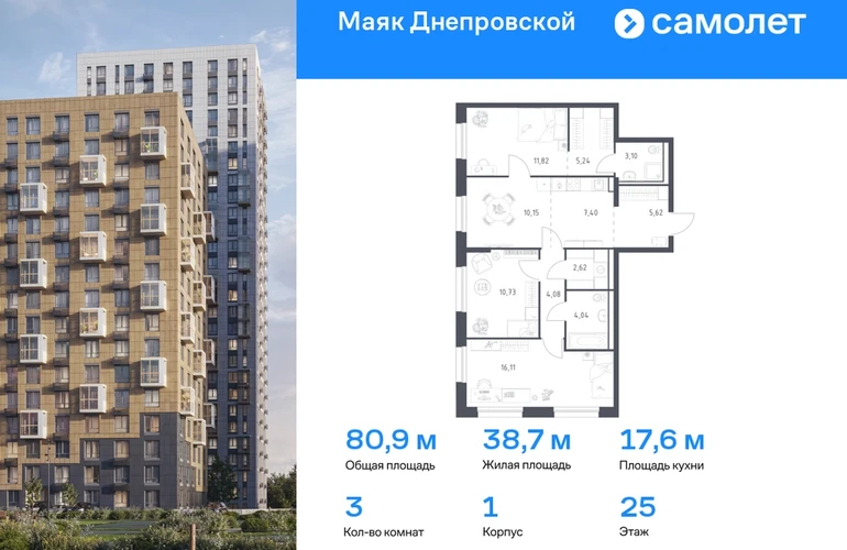 Строим кварталы для жизни с заботой о будущем. Предлагается 3-комнатная квартира комфорт-класса 80,91 кв.м в корпусе 1 на 25 этаже, в ЖК «Маяк Днепровской» Квартира без отделки. Доступность опции «отделка» и возможность комплектации мебелью и декором уточняйте у застройщика. Приобрести квартиру возможно по специальным акциям от застройщика, с текущими условиями акций можно ознакомиться в блоке «Акций». Цена динамическая и может отличаться, уточняйте актуальность у застройщика. «Маяк Днепровской» — это маленький город с домами высотой от 17 до 30 этажей. Мы строим современные здания со стилобатами и террасами, которые отвечают архитектурным трендам, но при этом гармонично вписываются в окружающие пейзажи. Переменная этажность домов повторяет уникальный дальневосточный ландшафт, а оттенки фасадов перекликаются с красками природы. Здесь вы будете любоваться живописными закатами и встречать рассветы с панорамного балкона. #yan19-2r1718803#О застройщике
