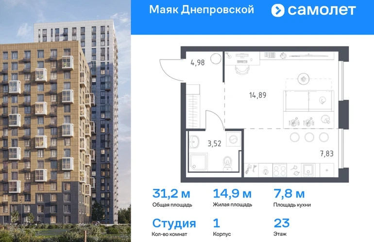 Строим кварталы для жизни с заботой о будущем. Предлагается квартира студия комфорт-класса 31,22 кв.м в корпусе 1 на 23 этаже, в ЖК «Маяк Днепровской» Квартира без отделки. Доступность опции «отделка» и возможность комплектации мебелью и декором уточняйте у застройщика. Приобрести квартиру возможно по специальным акциям от застройщика, с текущими условиями акций можно ознакомиться в блоке «Акций». Цена динамическая и может отличаться, уточняйте актуальность у застройщика. «Маяк Днепровской» — это маленький город с домами высотой от 17 до 30 этажей. Мы строим современные здания со стилобатами и террасами, которые отвечают архитектурным трендам, но при этом гармонично вписываются в окружающие пейзажи. Переменная этажность домов повторяет уникальный дальневосточный ландшафт, а оттенки фасадов перекликаются с красками природы. Здесь вы будете любоваться живописными закатами и встречать рассветы с панорамного балкона. #yan19-2r1744815#О застройщике