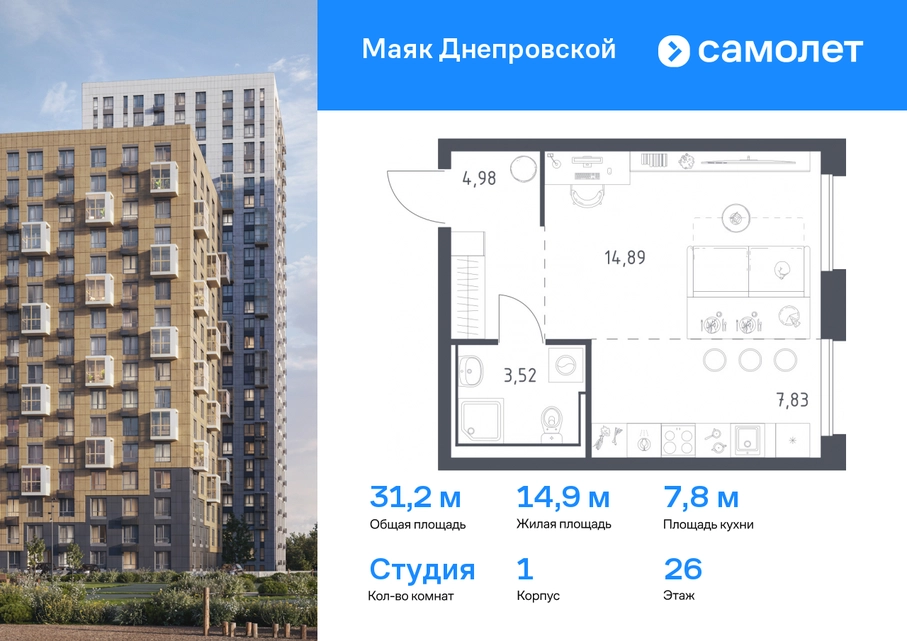 Строим кварталы для жизни с заботой о будущем. Предлагается квартира студия комфорт-класса 31,22 кв.м в корпусе 1 на 26 этаже, в ЖК «Маяк Днепровской» Квартира без отделки. Доступность опции «отделка» и возможность комплектации мебелью и декором уточняйте у застройщика. Приобрести квартиру возможно по специальным акциям от застройщика, с текущими условиями акций можно ознакомиться в блоке «Акций». Цена динамическая и может отличаться, уточняйте актуальность у застройщика. «Маяк Днепровской» — это маленький город с домами высотой от 17 до 30 этажей. Мы строим современные здания со стилобатами и террасами, которые отвечают архитектурным трендам, но при этом гармонично вписываются в окружающие пейзажи. Переменная этажность домов повторяет уникальный дальневосточный ландшафт, а оттенки фасадов перекликаются с красками природы. Здесь вы будете любоваться живописными закатами и встречать рассветы с панорамного балкона. #yan19-2r1744818#О застройщике