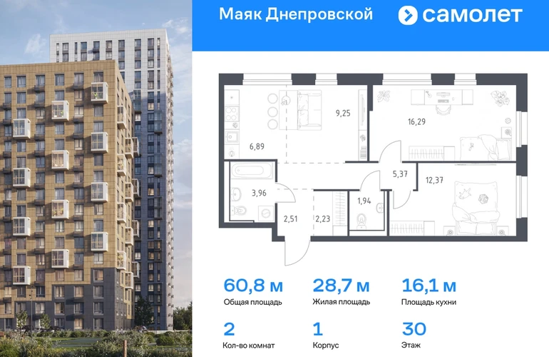 Строим кварталы для жизни с заботой о будущем. Предлагается 2-комнатная квартира комфорт-класса 60,81 кв.м в корпусе 1 на 30 этаже, в ЖК «Маяк Днепровской» Квартира без отделки. Доступность опции «отделка» и возможность комплектации мебелью и декором уточняйте у застройщика. Приобрести квартиру возможно по специальным акциям от застройщика, с текущими условиями акций можно ознакомиться в блоке «Акций». Цена динамическая и может отличаться, уточняйте актуальность у застройщика. «Маяк Днепровской» — это маленький город с домами высотой от 17 до 30 этажей. Мы строим современные здания со стилобатами и террасами, которые отвечают архитектурным трендам, но при этом гармонично вписываются в окружающие пейзажи. Переменная этажность домов повторяет уникальный дальневосточный ландшафт, а оттенки фасадов перекликаются с красками природы. Здесь вы будете любоваться живописными закатами и встречать рассветы с панорамного балкона. #yan19-2r1796101#О застройщике