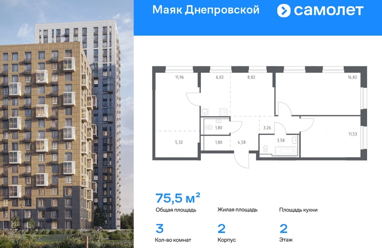 Строим кварталы для жизни с заботой о будущем. Предлагается 3-комнатная квартира комфорт-класса 75,49 кв.м в корпусе 2 на 2 этаже, в ЖК «Маяк Днепровской» Квартира без отделки. Доступность опции «отделка» и возможность комплектации мебелью и декором уточняйте у застройщика. Приобрести квартиру возможно по специальным акциям от застройщика, с текущими условиями акций можно ознакомиться в блоке «Акций». Цена динамическая и может отличаться, уточняйте актуальность у застройщика. «Маяк Днепровской» — это маленький город с домами высотой от 17 до 30 этажей. Мы строим современные здания со стилобатами и террасами, которые отвечают архитектурным трендам, но при этом гармонично вписываются в окружающие пейзажи. Переменная этажность домов повторяет уникальный дальневосточный ландшафт, а оттенки фасадов перекликаются с красками природы. Здесь вы будете любоваться живописными закатами и встречать рассветы с панорамного балкона. #yan19-2r1815873#О застройщике