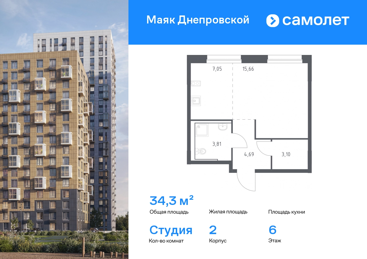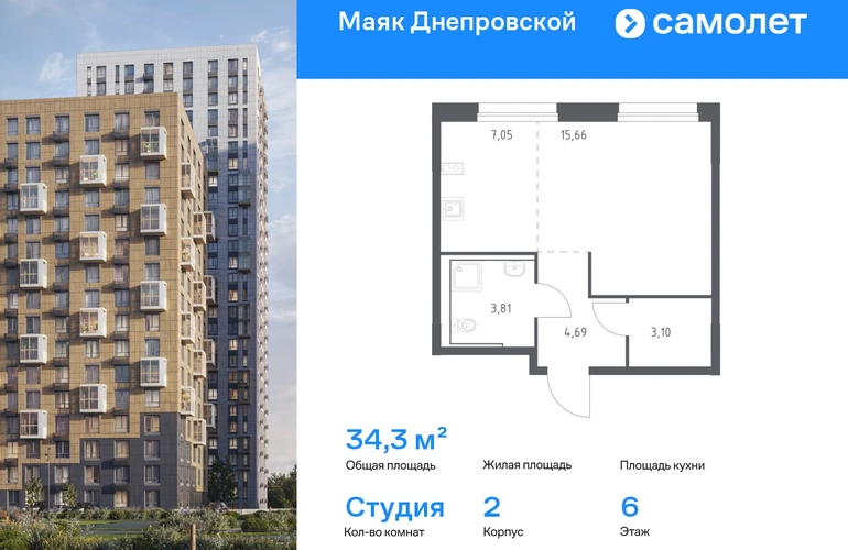 Строим кварталы для жизни с заботой о будущем. Предлагается квартира студия комфорт-класса 34,31 кв.м в корпусе 2 на 6 этаже, в ЖК «Маяк Днепровской» Квартира без отделки. Доступность опции «отделка» и возможность комплектации мебелью и декором уточняйте у застройщика. Приобрести квартиру возможно по специальным акциям от застройщика, с текущими условиями акций можно ознакомиться в блоке «Акций». Цена динамическая и может отличаться, уточняйте актуальность у застройщика. «Маяк Днепровской» — это маленький город с домами высотой от 17 до 30 этажей. Мы строим современные здания со стилобатами и террасами, которые отвечают архитектурным трендам, но при этом гармонично вписываются в окружающие пейзажи. Переменная этажность домов повторяет уникальный дальневосточный ландшафт, а оттенки фасадов перекликаются с красками природы. Здесь вы будете любоваться живописными закатами и встречать рассветы с панорамного балкона. #yan19-2r1815884#О застройщике
