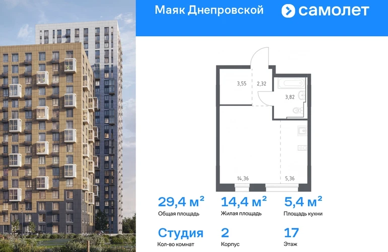 Строим кварталы для жизни с заботой о будущем. Предлагается квартира студия комфорт-класса 29,41 кв.м в корпусе 2 на 17 этаже, в ЖК «Маяк Днепровской» Квартира с предчистовой отделкой. Доступность дополнительных опций уточняйте у застройщика. Приобрести квартиру возможно по специальным акциям от застройщика, с текущими условиями акций можно ознакомиться в блоке «Акций». Цена динамическая и может отличаться, уточняйте актуальность у застройщика. «Маяк Днепровской» — это маленький город с домами высотой от 17 до 30 этажей. Мы строим современные здания со стилобатами и террасами, которые отвечают архитектурным трендам, но при этом гармонично вписываются в окружающие пейзажи. Переменная этажность домов повторяет уникальный дальневосточный ландшафт, а оттенки фасадов перекликаются с красками природы. Здесь вы будете любоваться живописными закатами и встречать рассветы с панорамного балкона. #yan19-2r1819059#О застройщике