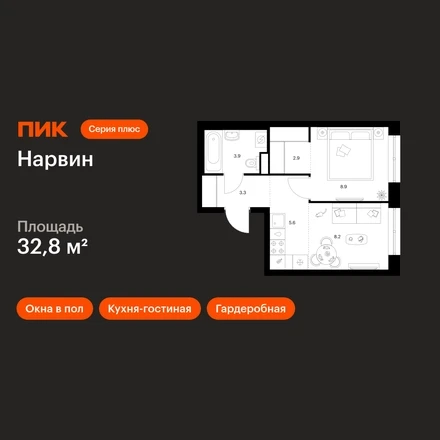 В Головинском районе продаётся 1-комнатная квартира квартира площадью 32.8 на 5 этаже 38 этажного дома (корпус 1.3, секция 3) в проекте ПИК «Нарвин». Удобное расположение 10 минут пешком до станции метро «Водный стадион» и 20 минут до МЦК «Коптево». 10 минут на автомобиле до ТТК. 5 минут пешком до ТЦ «Водный стадион». 8 минут пешком до Головинских прудов, 10 минут до Кронштадтского сквера и 15 минут до парка Дружбы. Особенности проекта «Нарвин» — камерный квартал «Серии плюс» из трёх зданий с продуманной архитектурой, рядом с метро «Водный стадион». В проекте вы найдёте квартиры с готовой отделкой, умными планировками, окнами в пол и балконами с видами на Головинские пруды. Преимущества проекта: Отделка: Готовая Особенности планировки: Гардеробная, Кухня-гостиная, Окна в пол, Внутрипольные конвекторы, Умная планировка Дизайнерские лобби с быстрыми и тихими лифтами, зонами ожидания и колясочными. Дворы-парки с местами для отдыха, лавочками с разъёмами для зарядки под разные устройства, детскими и спортивными площадками. Магазины, кафе и полезные сервисы на первых этажах домов. Подземный паркинг. АртикулО застройщике