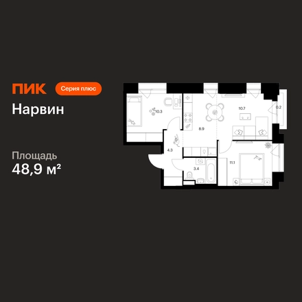 В Головинском районе продаётся 2-комнатная квартира квартира площадью 48.9 на 10 этаже 19 этажного дома (корпус 1.2, секция 2) в проекте ПИК «Нарвин». Удобное расположение 10 минут пешком до станции метро «Водный стадион» и 20 минут до МЦК «Коптево». 10 минут на автомобиле до ТТК. 5 минут пешком до ТЦ «Водный стадион». 8 минут пешком до Головинских прудов, 10 минут до Кронштадтского сквера и 15 минут до парка Дружбы. Особенности проекта «Нарвин» — камерный квартал «Серии плюс» из трёх зданий с продуманной архитектурой, рядом с метро «Водный стадион». В проекте вы найдёте квартиры с готовой отделкой, умными планировками, окнами в пол и балконами с видами на Головинские пруды. Преимущества проекта: Отделка: Готовая Особенности планировки: Разнесенные спальни, Кухня-гостиная, Французский балкон, Внутрипольные конвекторы Дизайнерские лобби с быстрыми и тихими лифтами, зонами ожидания и колясочными. Дворы-парки с местами для отдыха, лавочками с разъёмами для зарядки под разные устройства, детскими и спортивными площадками. Магазины, кафе и полезные сервисы на первых этажах домов. Подземный паркинг. АртикулО застройщике