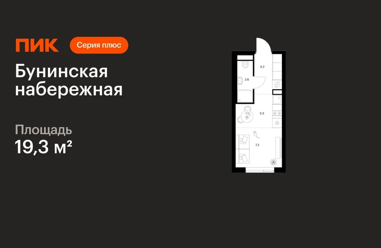 В Новой Москве продаётся студия квартира площадью 19.3 на 9 этаже 16 этажного дома (корпус 2.6/1.5, секция 5) в проекте ПИК «Бунинская набережная». Удобное расположение 18 минут пешком до станции метро «Потапово» и 12 минут на машине до метро «Бунинская аллея». 9 минут на машине до Солнцево-Бутово-Варшавского шоссе и 17 минут до МКАД. 8 минут на автомобиле до гипермаркета «Глобус». 15 минут на автомобиле до живописного Бутовского лесопарка и заказника «Южное Бутово». Особенности проекта «Бунинская набережная» — камерный квартал «Серии плюс» на берегу Ивановского пруда. В шаговой доступности вся нужная инфраструктура: детские сады, школы, поликлиники, игровая площадка ПлейХаб «Пирамиды» и скейт-парк. Удобные и разнообразные планировки позволят каждому выбрать квартиру для собственного сценария жизни. Преимущества проекта: Отделка: Просторные и светлые лобби с быстрыми тихими лифтами. Дворы-парки с местами для отдыха, детскими и спортивными площадками. Пешеходный бульвар и благоустроенная набережная. Магазины, кафе и полезные сервисы на первых этажах домов. Подземный паркинг. АртикулО застройщике