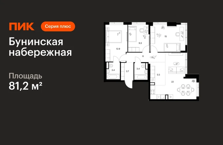 В Новой Москве продаётся 3-комнатная квартира квартира площадью 81.2 на 2 этаже 16 этажного дома (корпус 2.6/1.5, секция 5) в проекте ПИК «Бунинская набережная». Удобное расположение 18 минут пешком до станции метро «Потапово» и 12 минут на машине до метро «Бунинская аллея». 9 минут на машине до Солнцево-Бутово-Варшавского шоссе и 17 минут до МКАД. 8 минут на автомобиле до гипермаркета «Глобус». 15 минут на автомобиле до живописного Бутовского лесопарка и заказника «Южное Бутово». Особенности проекта «Бунинская набережная» — камерный квартал «Серии плюс» на берегу Ивановского пруда. В шаговой доступности вся нужная инфраструктура: детские сады, школы, поликлиники, игровая площадка ПлейХаб «Пирамиды» и скейт-парк. Удобные и разнообразные планировки позволят каждому выбрать квартиру для собственного сценария жизни. Преимущества проекта: Отделка: Просторные и светлые лобби с быстрыми тихими лифтами. Дворы-парки с местами для отдыха, детскими и спортивными площадками. Пешеходный бульвар и благоустроенная набережная. Магазины, кафе и полезные сервисы на первых этажах домов. Подземный паркинг. АртикулО застройщике