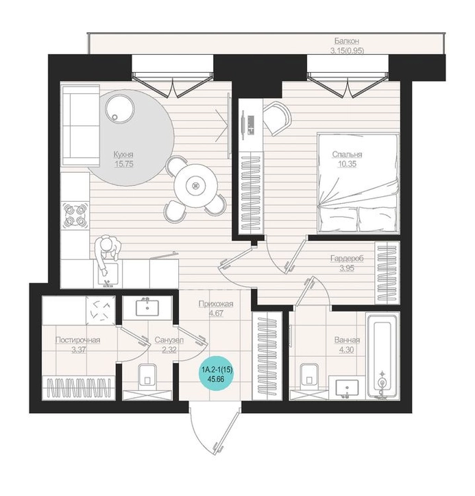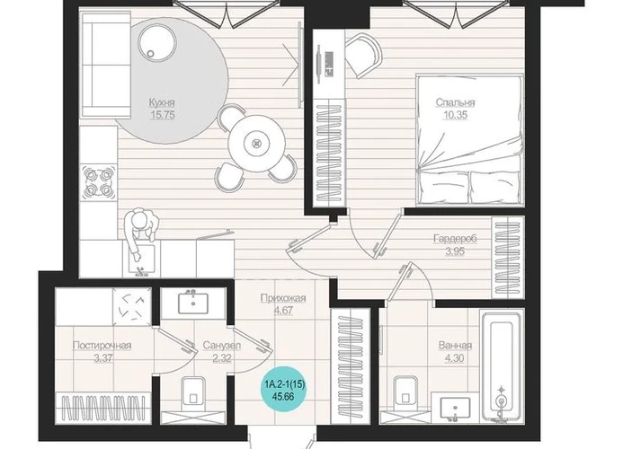 • Общая площадь45.66