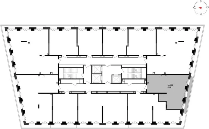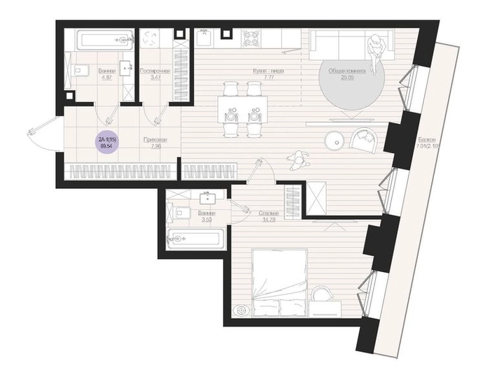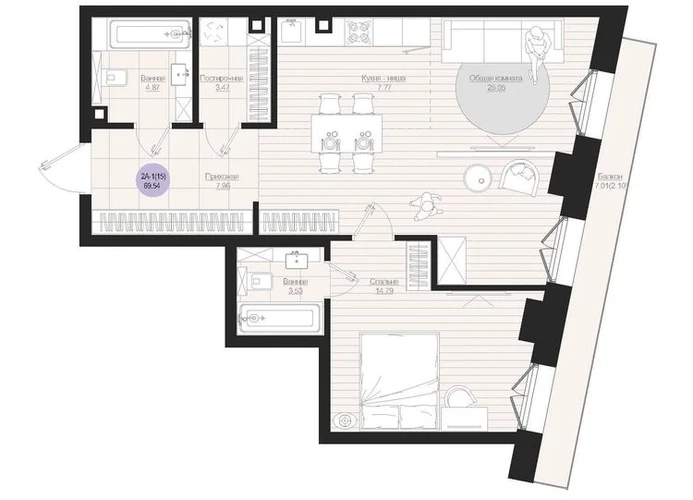 2-ком, 69.54 кв.м., 2/19эт.