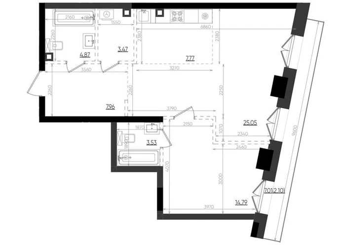 Квартирографию проекта отличает разнообразие форматов и планировок. Высокие потолки от 3,4 м и панорамные окна с открыточным видом на Волгу формируют наполненные светом «воздушные» пространства.