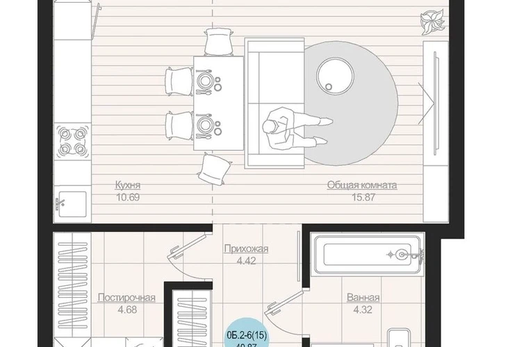 Квартирографию проекта отличает разнообразие форматов и планировок. Высокие потолки от 3,4 м и панорамные окна с открыточным видом на Волгу формируют наполненные светом «воздушные» пространства.