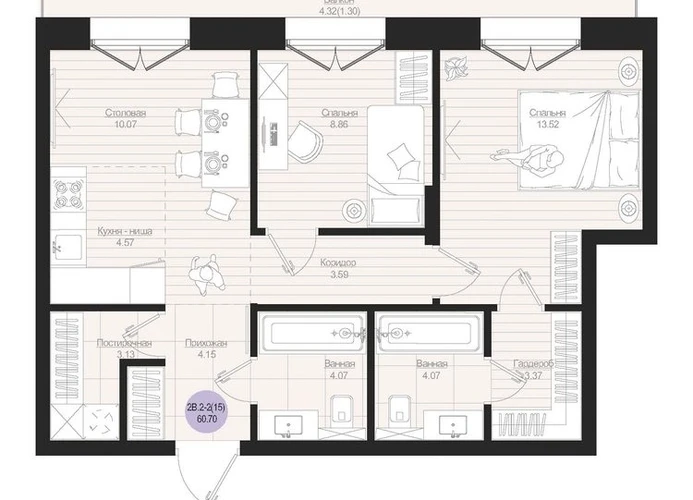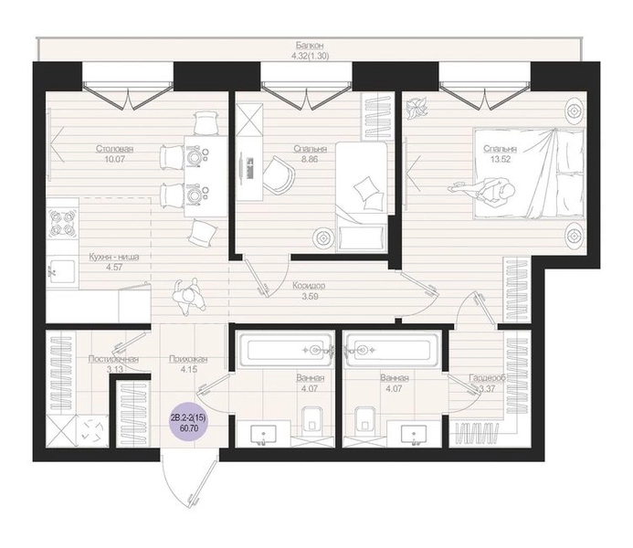 Квартирографию проекта отличает разнообразие форматов и планировок. Высокие потолки от 3,4 м и панорамные окна с открыточным видом на Волгу формируют наполненные светом «воздушные» пространства.