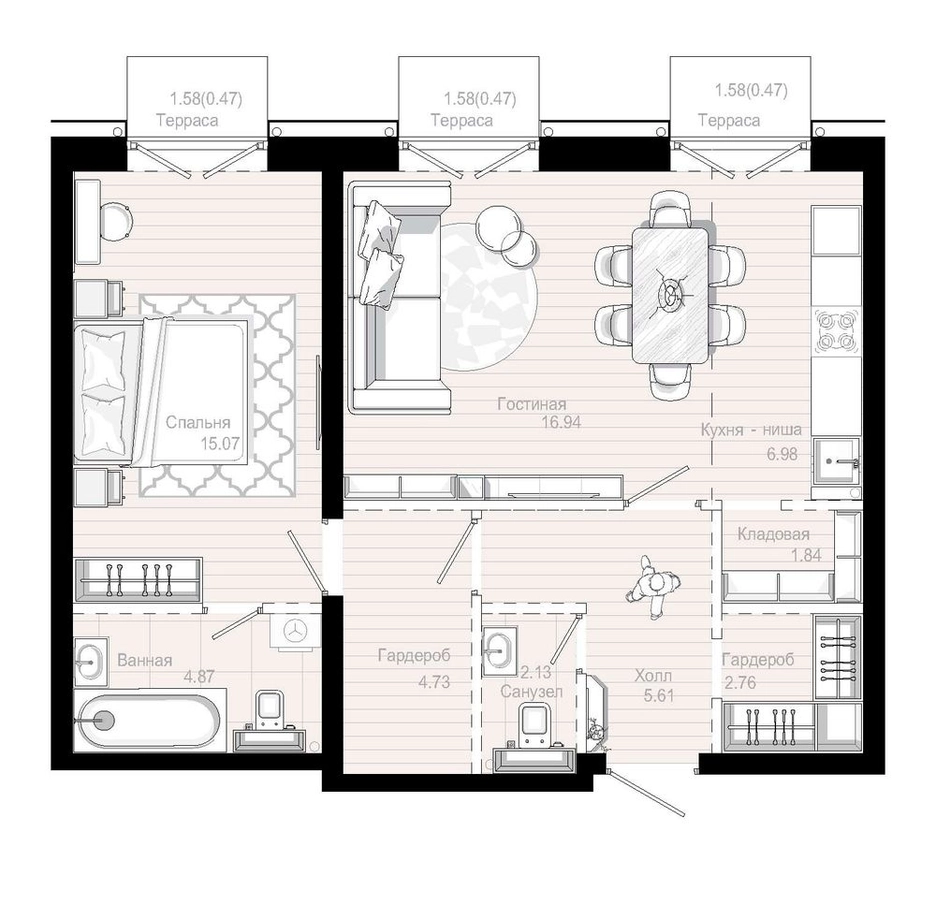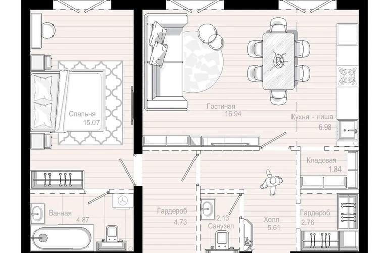 Квартирографию проекта отличает разнообразие форматов и планировок. Высокие потолки от 3,4 м и панорамные окна с открыточным видом на Волгу формируют наполненные светом «воздушные» пространства.