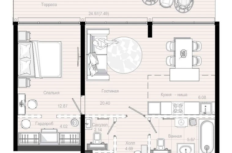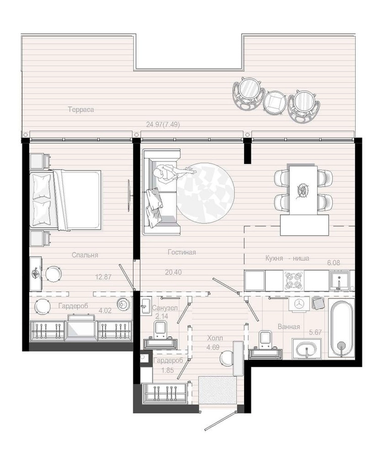 Квартирографию проекта отличает разнообразие форматов и планировок. Высокие потолки от 3,4 м и панорамные окна с открыточным видом на Волгу формируют наполненные светом «воздушные» пространства.