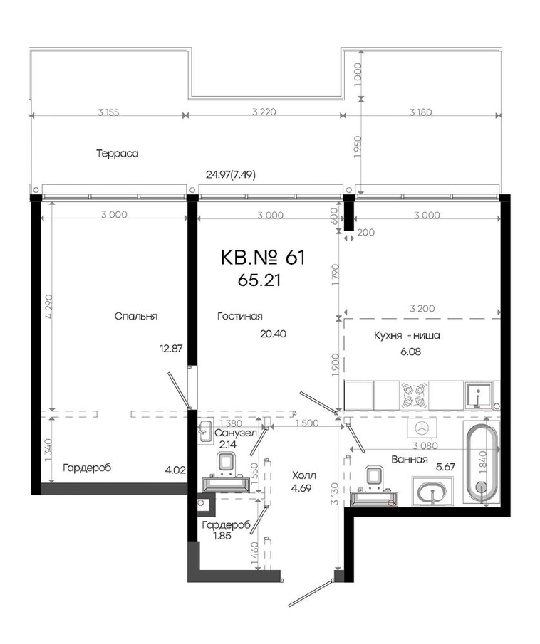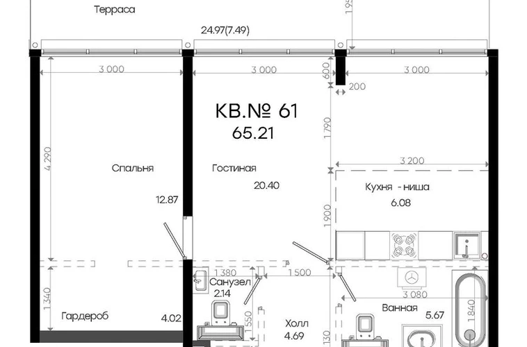• Общая площадь65.21