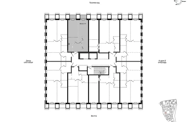 Квартирографию проекта отличает разнообразие форматов и планировок. Высокие потолки от 3,4 м и панорамные окна с открыточным видом на Волгу формируют наполненные светом «воздушные» пространства.