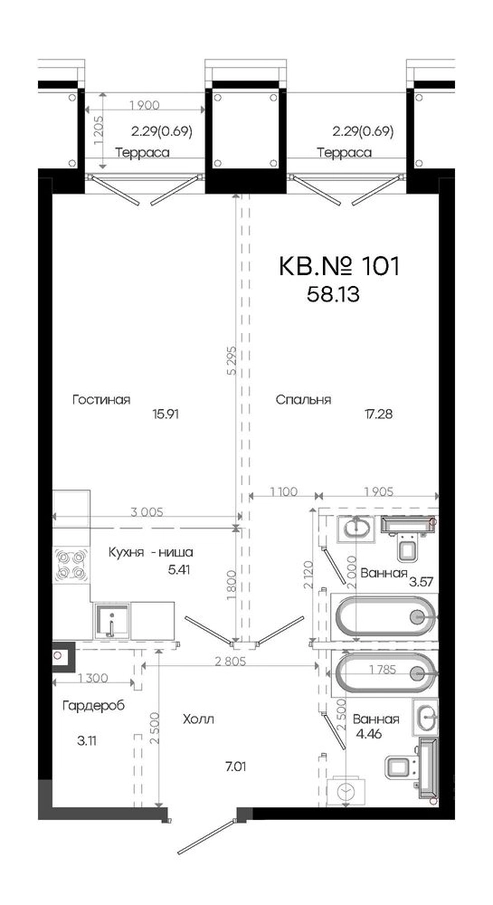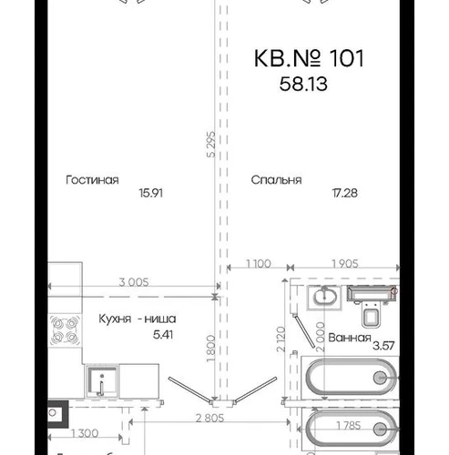 • Общая площадь58.13